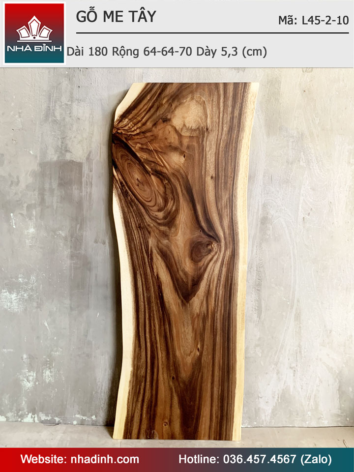 Mặt Bàn Gỗ Me Tây Nguyên Khối Dài 180 Rộng 64-64-70 Dày 5,3 (cm)