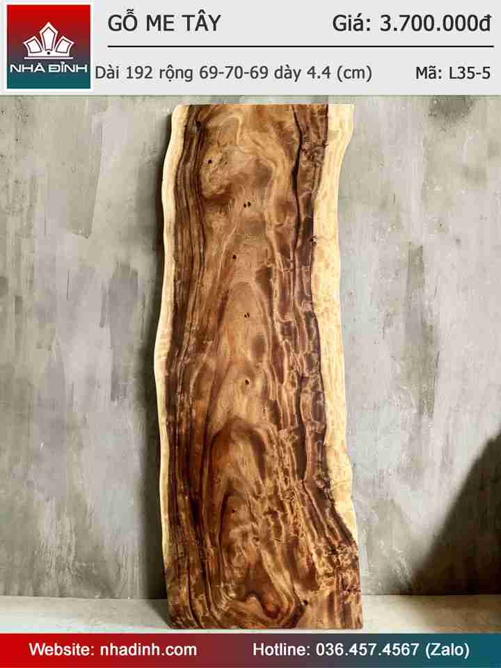 Mặt Bàn Gỗ Me Tây Nguyên Khối Dài 192 Rộng 69-70-69 Dày 4,4 (cm)