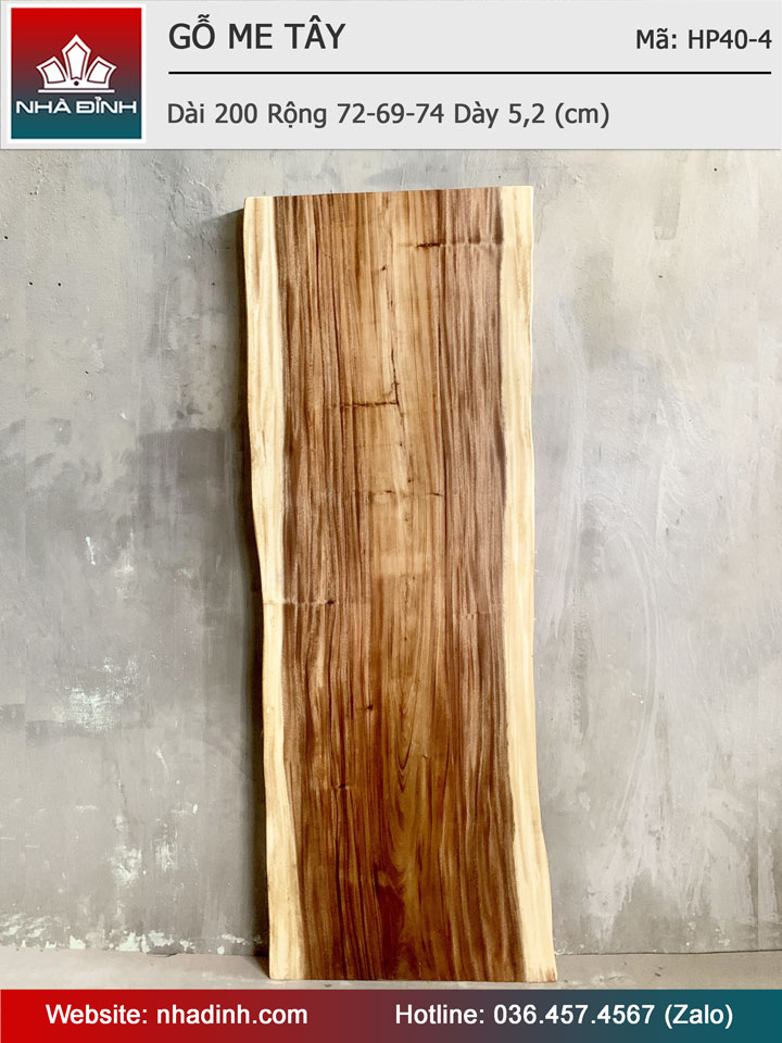 Mặt Bàn Gỗ Me Tây Nguyên Khối Dài 200 Rộng 72-69-74 Dày 5,2 (cm)