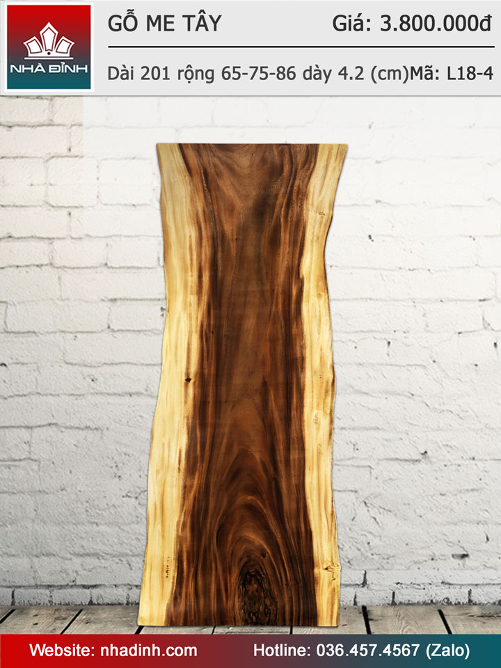 Mặt bàn gỗ Me Tây nguyên khối dài 201 rộng 65-75-86 dày 4,2(cm)