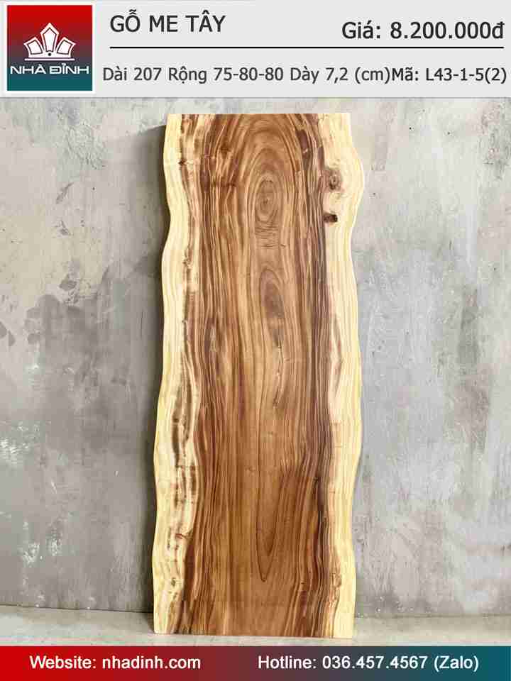 Mặt Bàn Gỗ Me Tây Nguyên Khối Dài 207 Rộng 75-80-80 Dày 7,2 (cm)