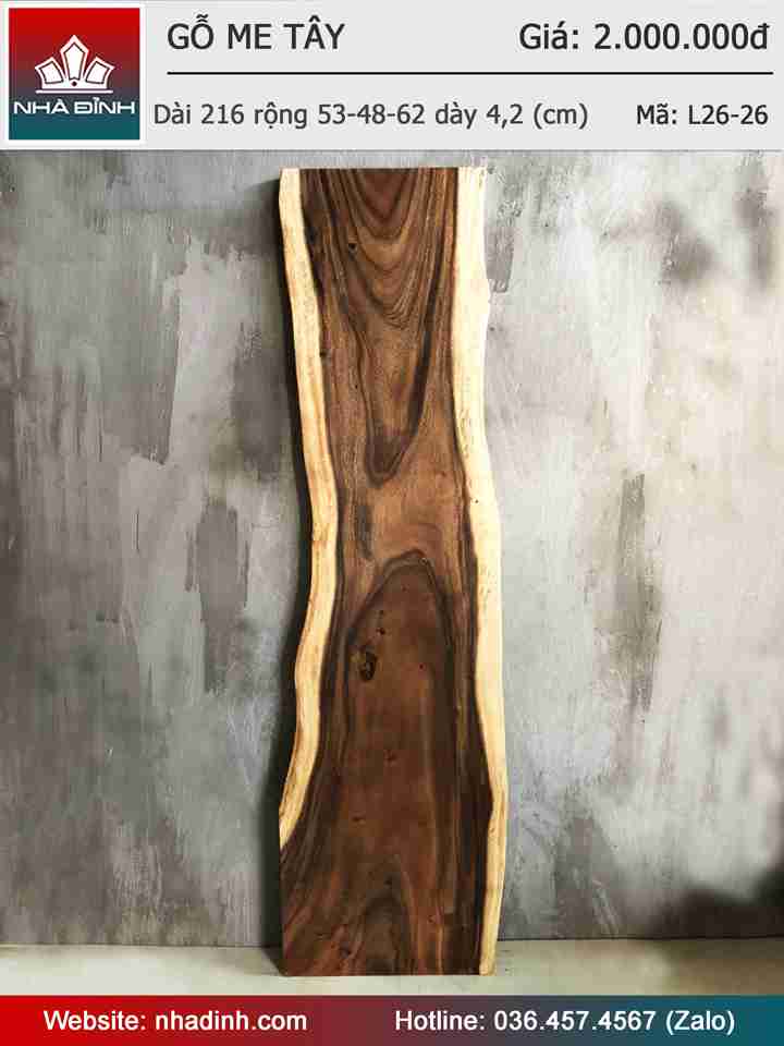 Mặt Bàn Gỗ Me Tây Nguyên Khối Dài 216 Rộng 53-48-62 Dày 4,2 (cm)