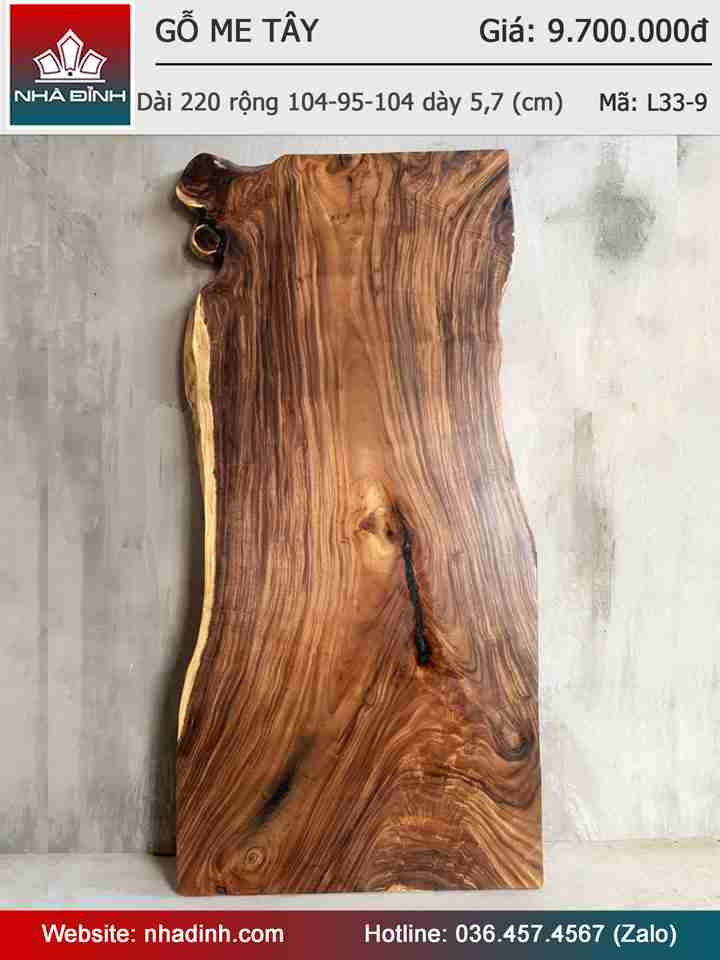 Mặt Bàn Gỗ Me Tây Nguyên Khối Dài 220 Rộng 104-95-104 Dày 5,7 (cm)