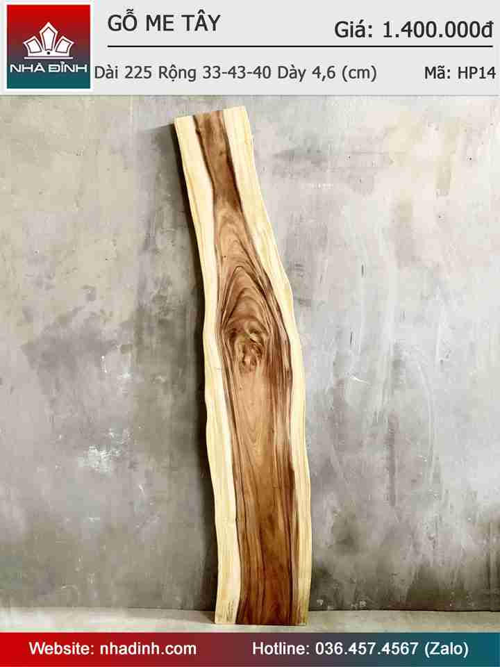 Mặt Bàn Gỗ Me Tây Nguyên Khối Dài 225 Rộng 33-43-40 Dày 4,6 (cm)