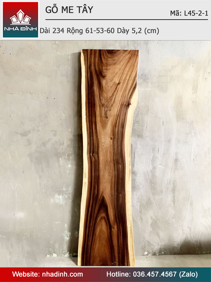 Mặt Bàn Gỗ Me Tây Nguyên Khối Dài 234 Rộng 61-53-60 Dày 5,2 (cm)