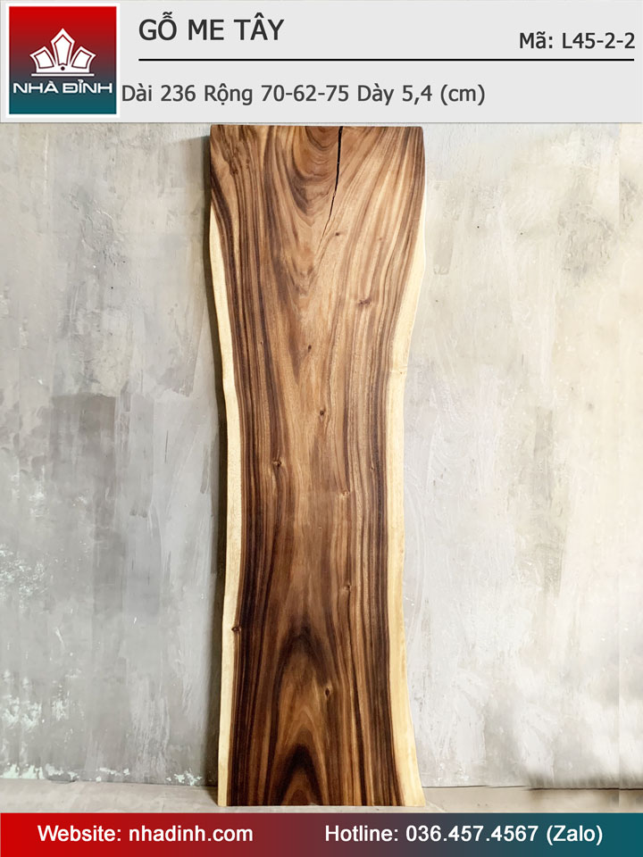 Mặt Bàn Gỗ Me Tây Nguyên Khối Dài 236 Rộng 70-62-75 Dày 5,4 (cm)