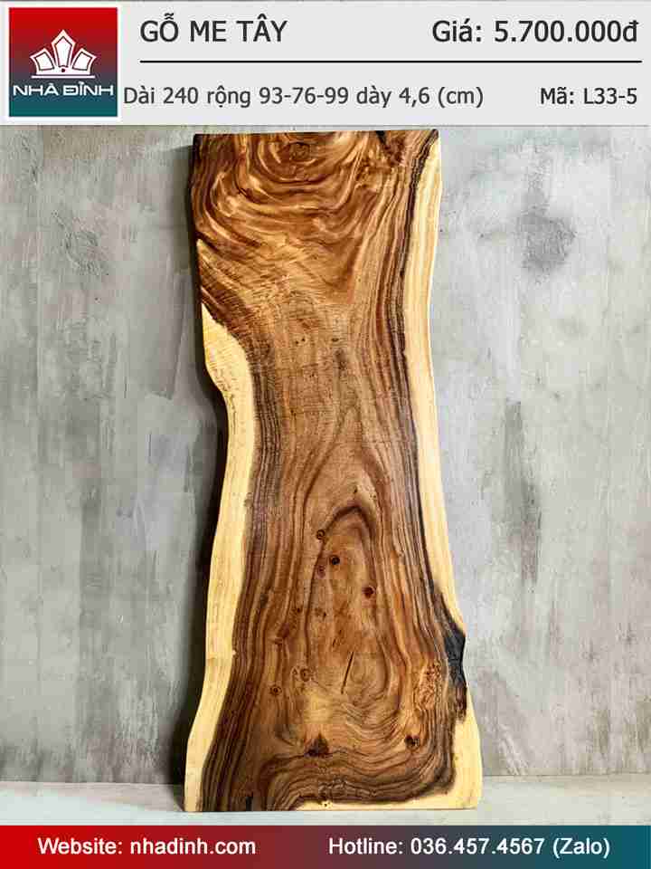 Mặt Bàn Gỗ Me Tây Nguyên Khối Dài 240 Rộng 93-76-99 Dày 4,6 (cm)