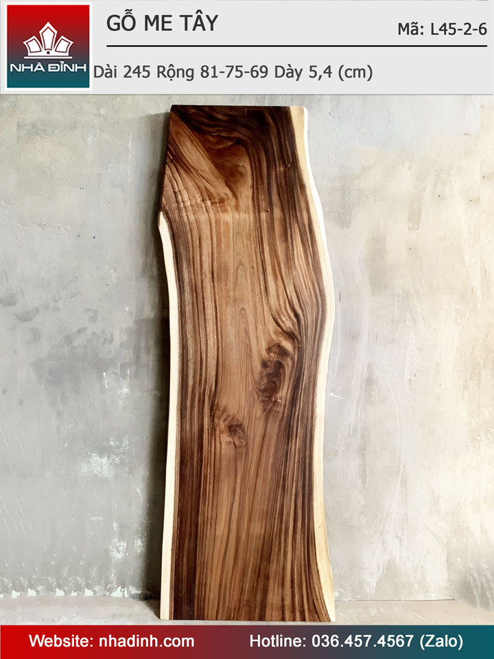 Mặt Bàn Gỗ Me Tây Nguyên Khối Dài 245 Rộng 81-75-69 Dày 5,4 (cm)