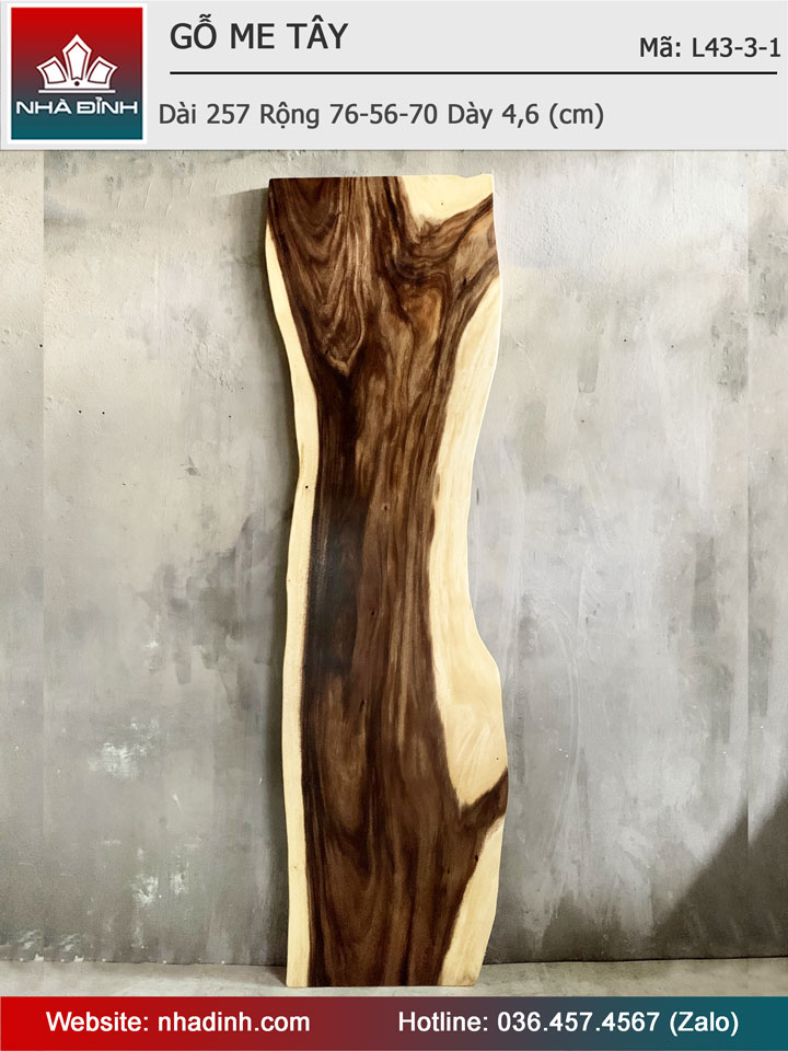 Mặt Bàn Gỗ Me Tây Nguyên Khối Dài 257 Rộng 76-56-70 Dày 4,6 (cm)