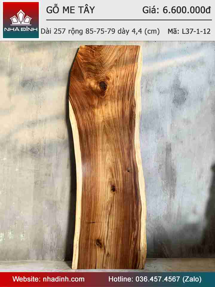 Mặt Bàn Gỗ Me Tây Nguyên Khối Dài 257 Rộng 85-75-79 Dày 4,4 (cm)