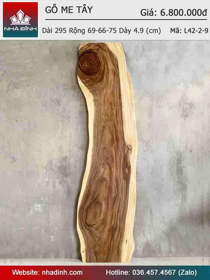 Mặt Bàn Gỗ Me Tây Nguyên Khối Dài 295 Rộng 69-66-75 Dày 4,9 (cm)