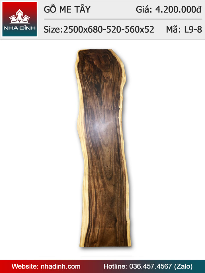 Mặt bàn gỗ Me Tây nguyên khối dài 2m5 rộng 68-52-56 dày 5,2 (cm)
