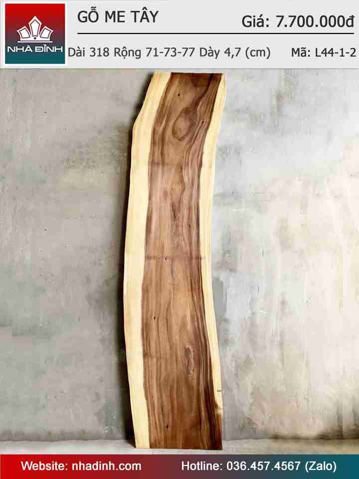 Mặt Bàn Gỗ Me Tây Nguyên Khối Dài 318 Rộng 71-73-77 Dày 4,7 (cm)
