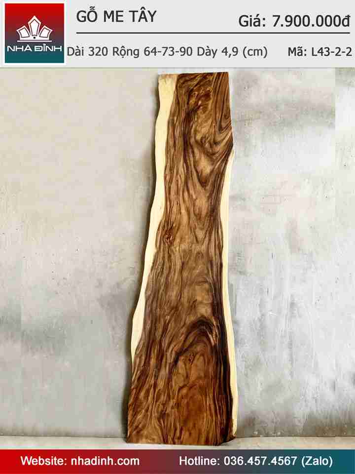 Mặt Bàn Gỗ Me Tây Nguyên Khối Dài 320 Rộng 64-73-90 Dày 4,9 (cm)