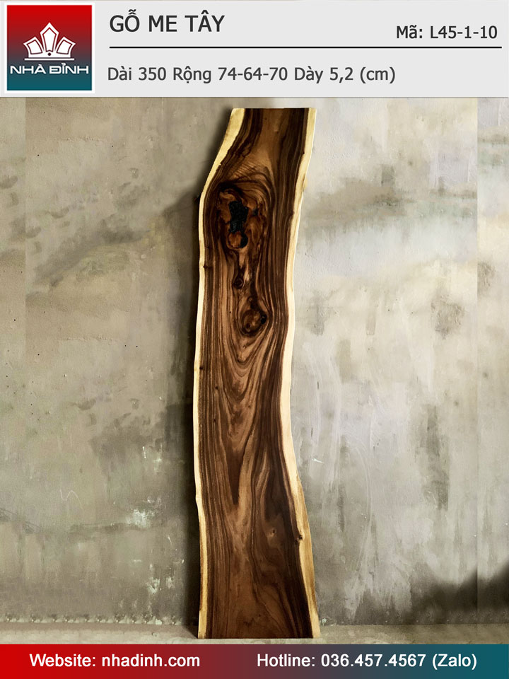 Mặt Bàn Gỗ Me Tây Nguyên Khối Dài 350 Rộng 74-64-70-62 Dày 5,2 (cm)