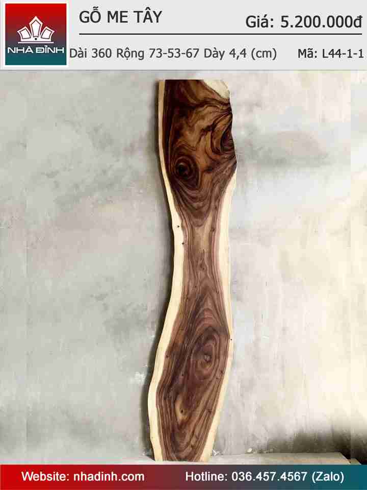 Mặt Bàn Gỗ Me Tây Nguyên Khối Dài 360 Rộng 73-53-67 Dày 4,4 (cm)