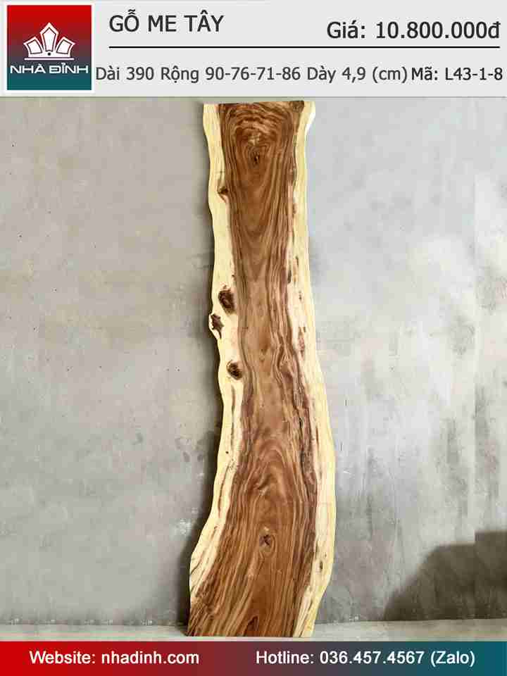 Mặt Bàn Gỗ Me Tây Nguyên Khối Dài 390 Rộng 90-76-71-86 Dày 4,9 (cm)