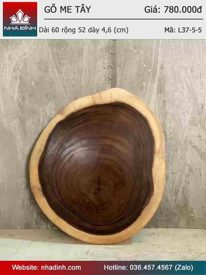 Mặt Bàn Gỗ Me Tây Nguyên Khối Dài 60 Rộng 52 Dày 4,6 (cm)