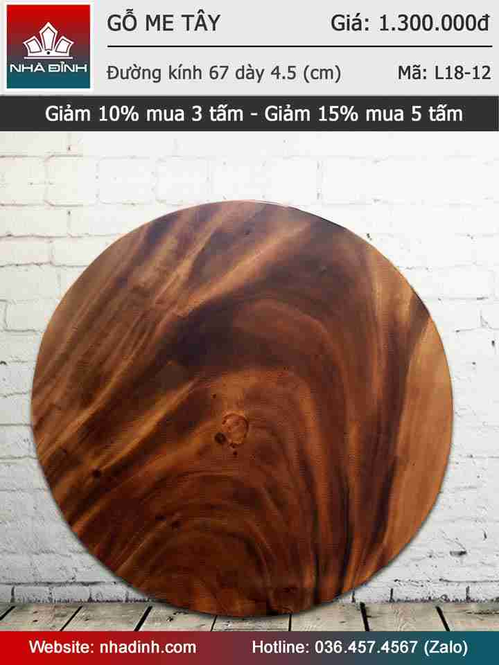 Mặt bàn gỗ Me Tây nguyên khối đường kính 67 dày 4,5 (cm)