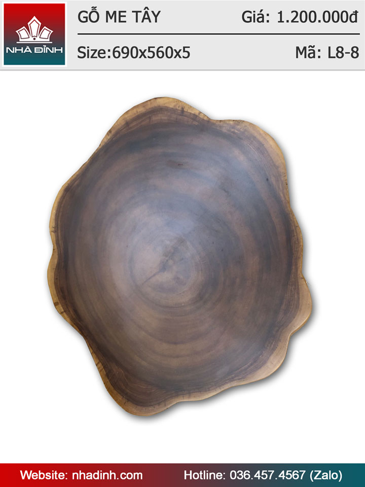 Mặt bàn gỗ Me Tây nguyên khối đường kính 69x56 dày 5 (cm)