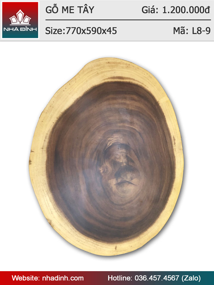 Mặt bàn gỗ Me Tây nguyen khối đường kính 77x59 dày 4,5 (cm)