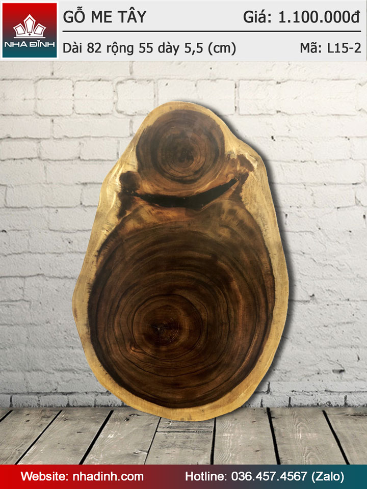 Mặt bàn gỗ Me Tây nguyên khối đường kính 820-550 dày 55 (mm)
