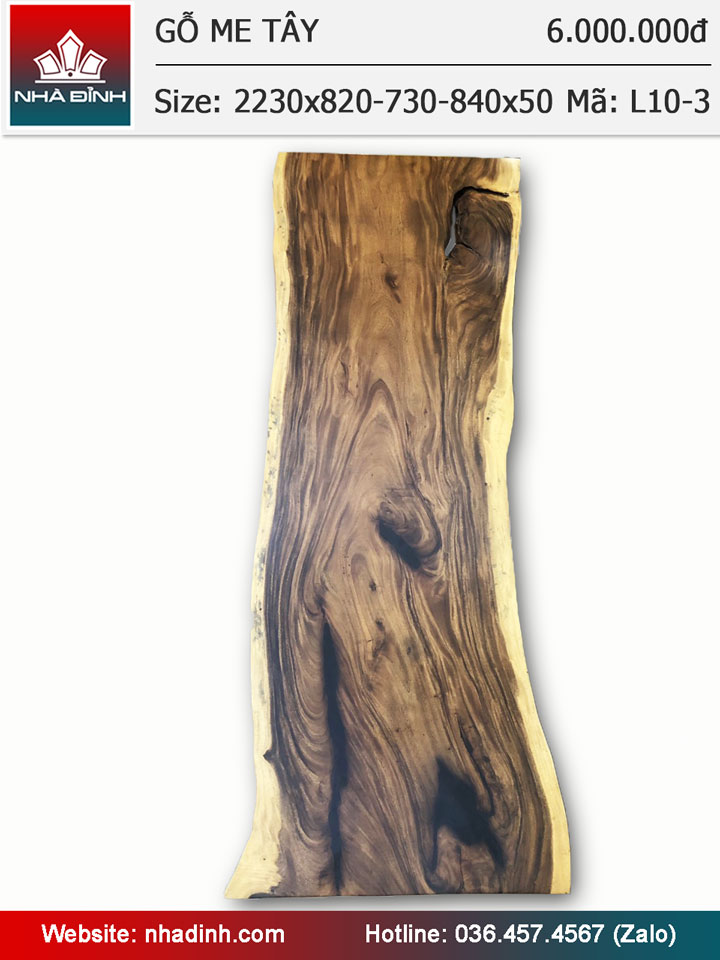 Mặt bàn gỗ Me Tây nguyên tấm dài 2m23 rộng 82-73-84 dày 5 (cm)