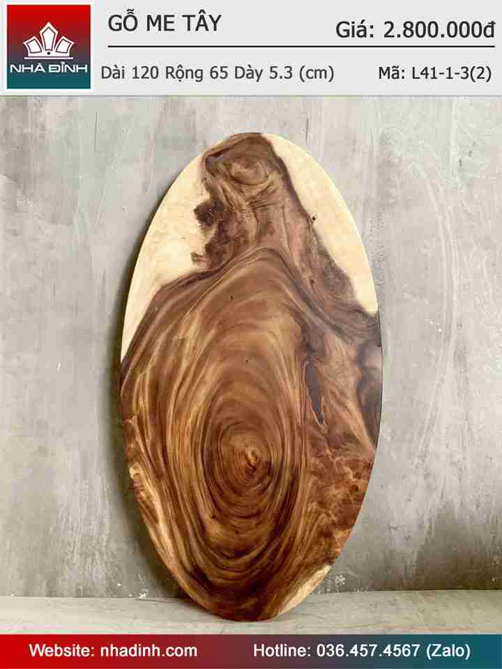 Mặt Bàn Oval Gỗ Me Tây Nguyên Khối Dài 120 Rộng 65 Dày 5,3 (cm)