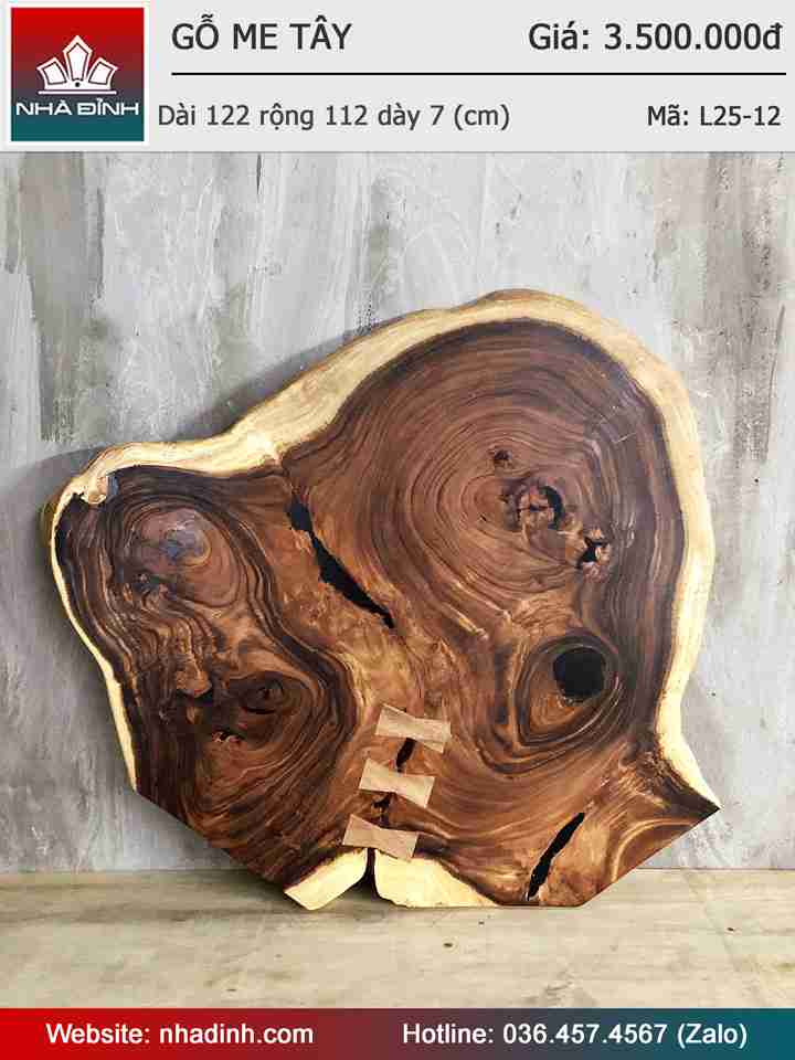Mặt Bàn Sofa Gỗ Me Tây Nguyên Khối Dài 122 Rộng 112 Dày 7 (cm)