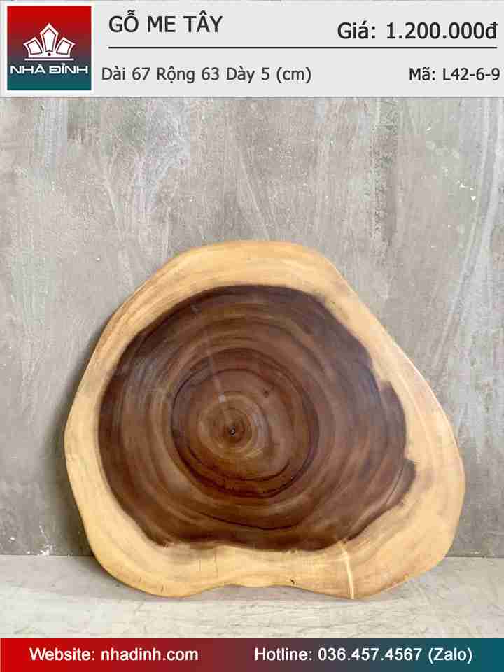 Mặt Bàn Trà Gỗ Me Tây Nguyên Khối Dài 67 Rộng 63 Dày 5 (cm)