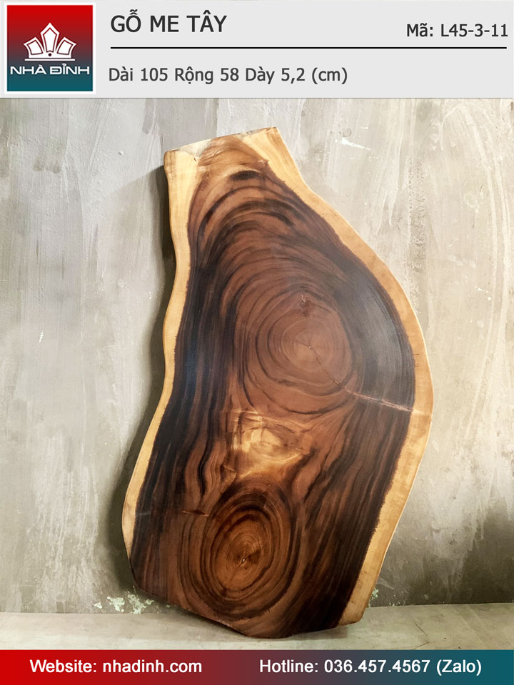 Mặt Bàn Trà Gỗ Me Tây Nguyên Khối Dài 105 Rộng 58 Dày 5,2 (cm)