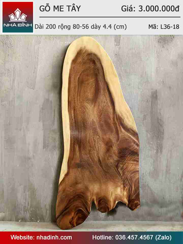 Mặt Bàn Trà Gỗ Me Tây Nguyên Khối Dài 200 Rộng 80-56 Dày 4,4 (cm)