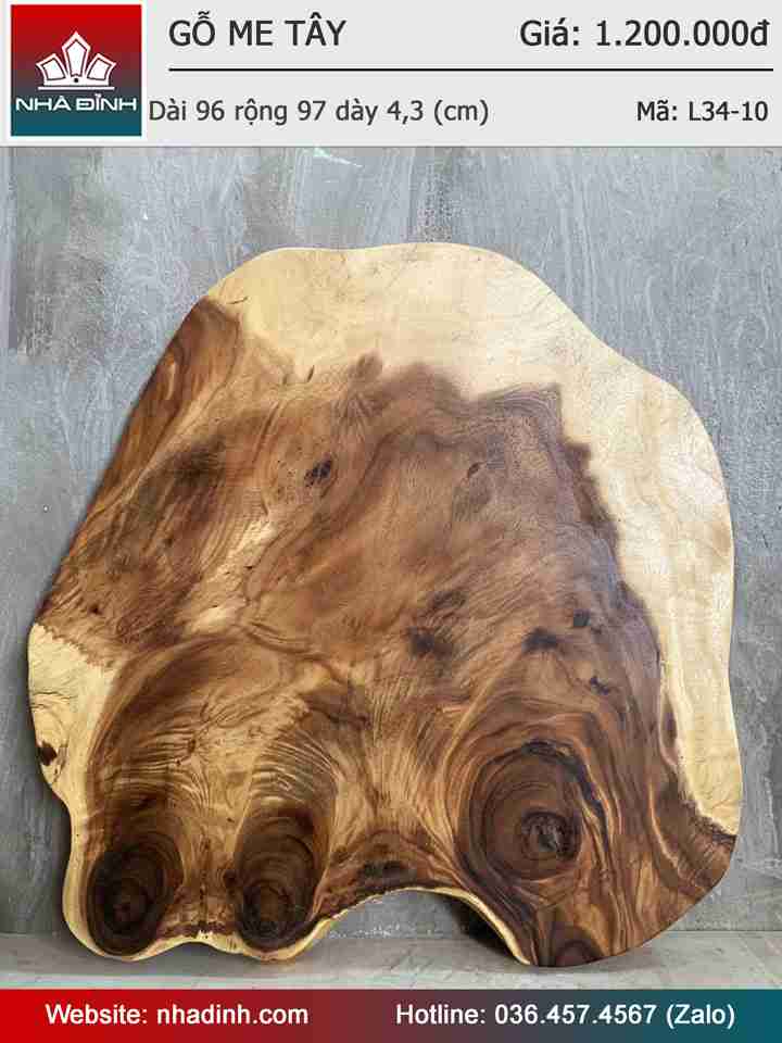 Mặt Bàn Trà Gỗ Me Tây Nguyên Khối Rộng 96-97 Dày 4,3 (cm)