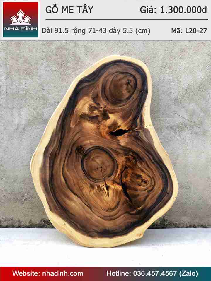 Mặt Bàn Trà, Sofa Gỗ Me Tây Nguyên Khối Dài 91.5 Rộng 71-43 Dày 5.5 (cm)
