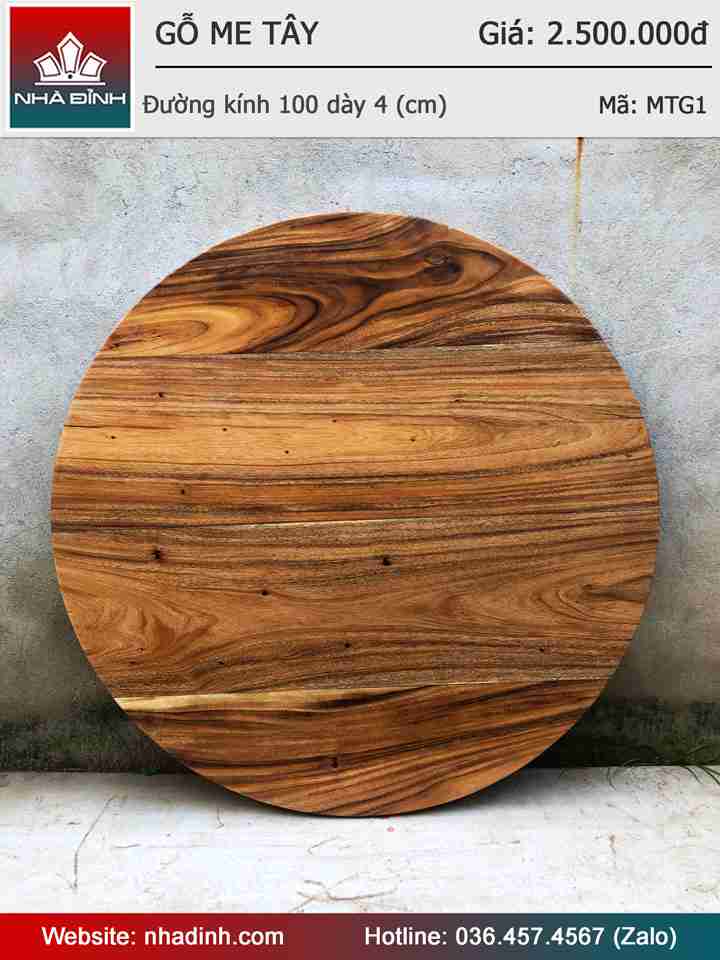 Mặt Bàn Tròn Ghép Gỗ Me Tây Đường Kính 100 Dày 4 (cm)