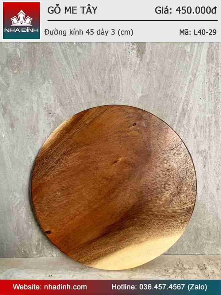 Mặt Bàn Tròn Gỗ Me Tây Nguyên Khối Đường Kính 45 Dày 3 (cm)