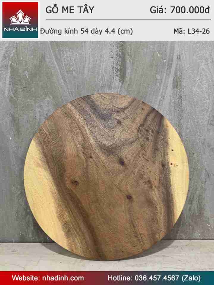 Mặt Bàn Tròn Gỗ Me Tây Nguyên Khối Đường Kính 54 Dày 4.4 (cm)