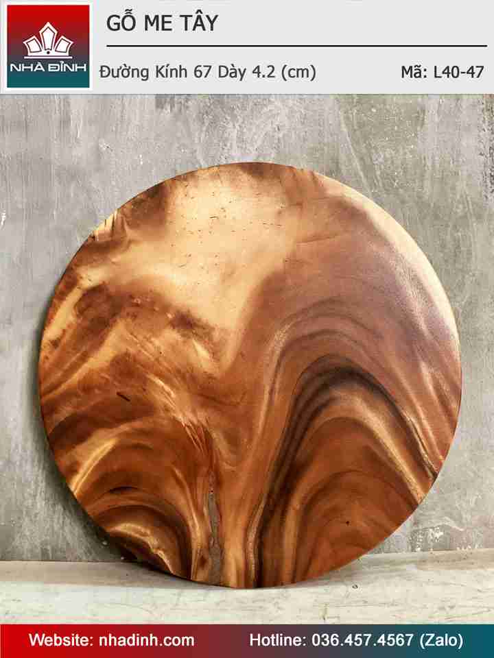 Mặt Bàn Tròn Gỗ Me Tây Nguyên Khối Đường Kính 67 Dày 4,2 (cm)
