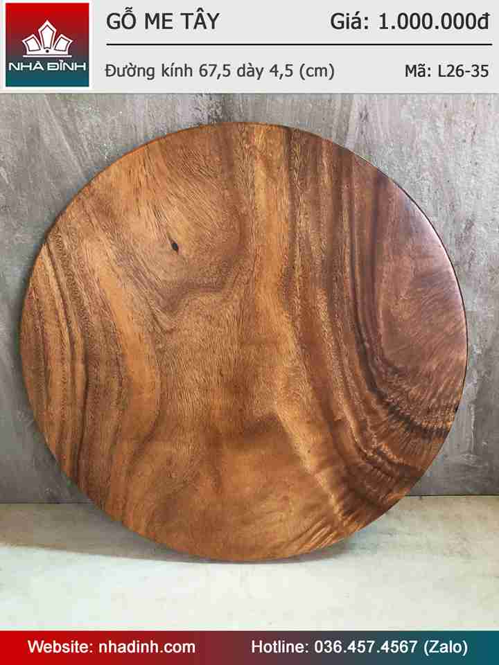 Mặt Bàn Tròn Gỗ Me Tây Nguyên Khối Đường Kính 67,5 Dày 4,5 (cm)