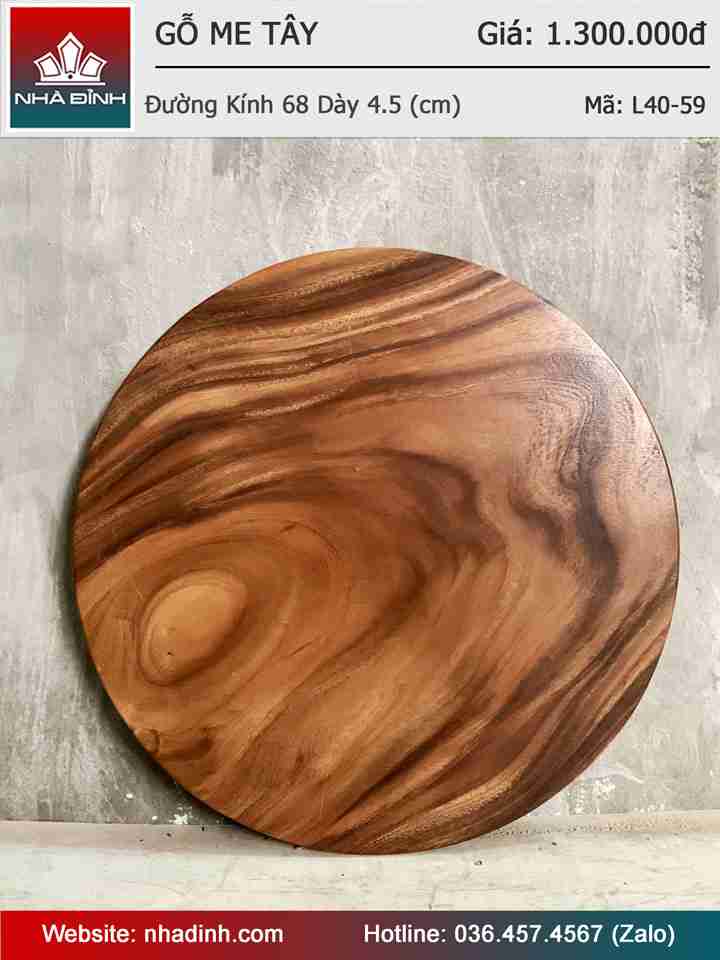 Mặt Bàn Tròn Gỗ Me Tây Nguyên Khối Đường Kính 68 Dày 4,5 (cm)