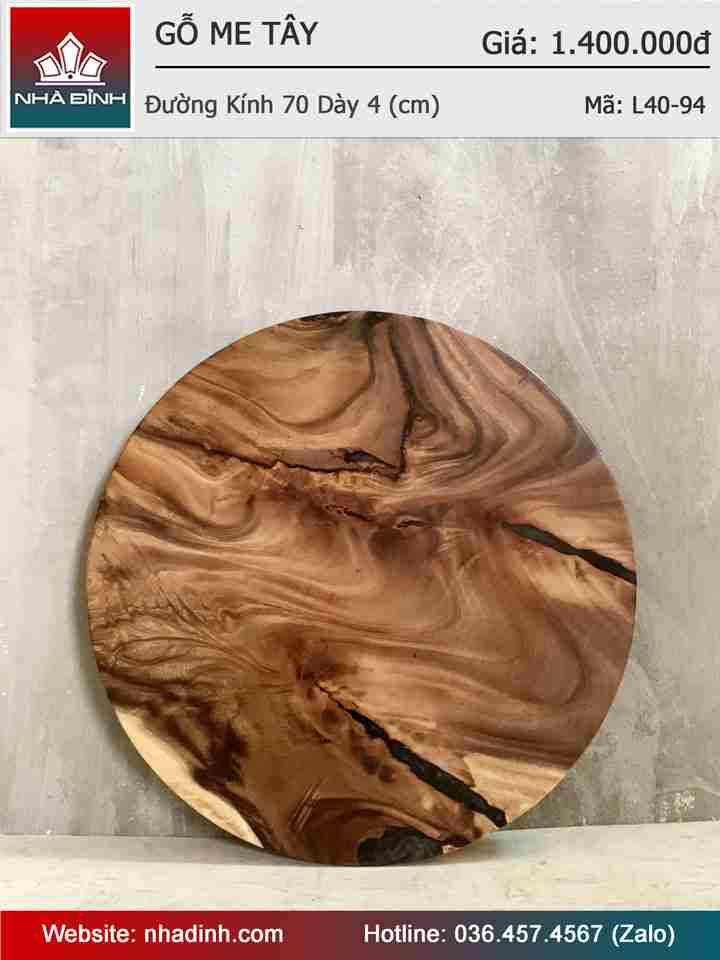 Mặt Bàn Tròn Gỗ Me Tây Nguyên Khối Đường Kính 70 Dày 4 (cm)