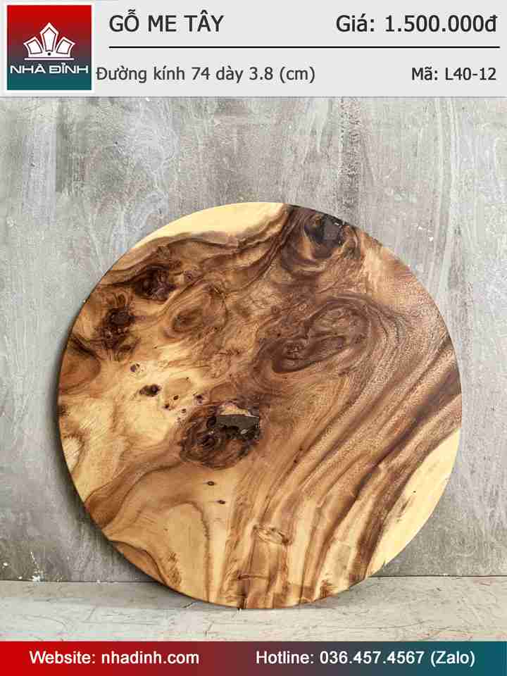 Mặt Bàn Tròn Gỗ Me Tây Nguyên Khối Đường Kính 74 Dày 3.8 (cm)
