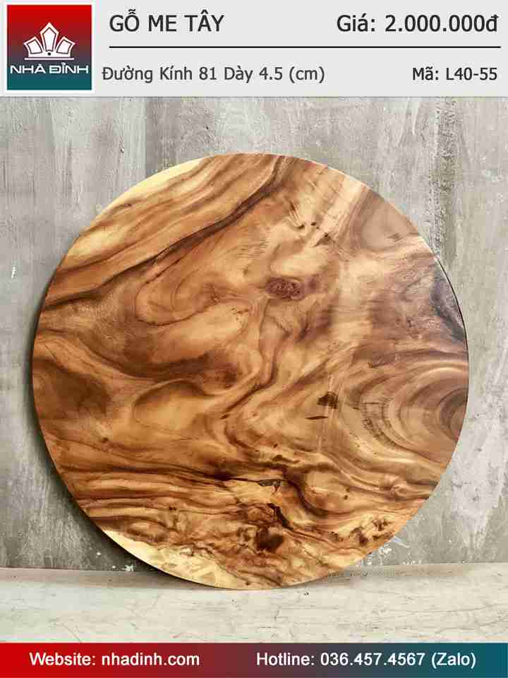 Mặt Bàn Tròn Gỗ Me Tây Nguyên Khối Đường Kính 81 Dày 4,5 (cm)