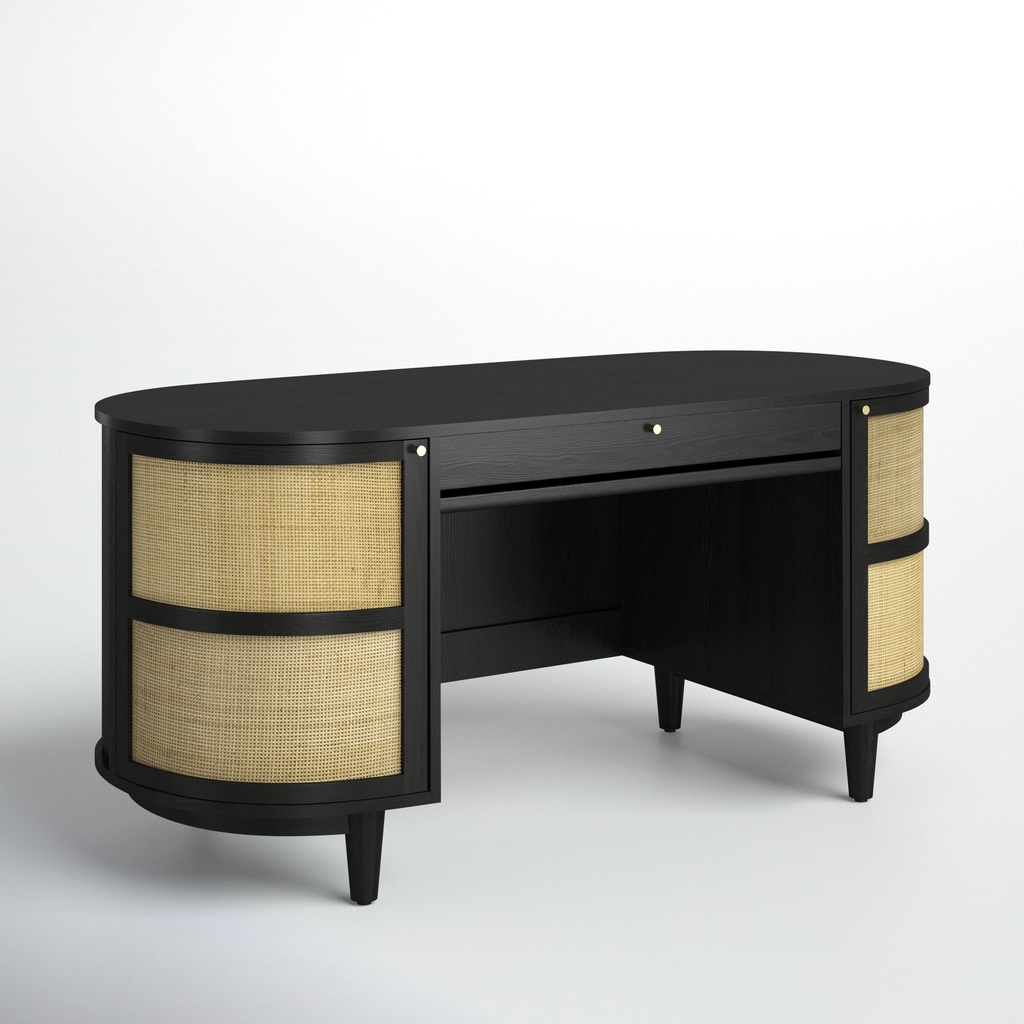 Bàn Làm Việc Sơn Đen Kết Hợp Mây Gỗ Sồi
