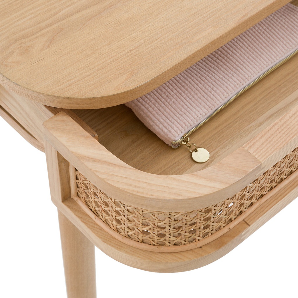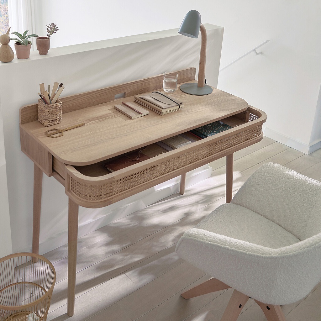 Bàn Làm Việc 1 Ngăn Gỗ Sồi Kết Hợp Mây