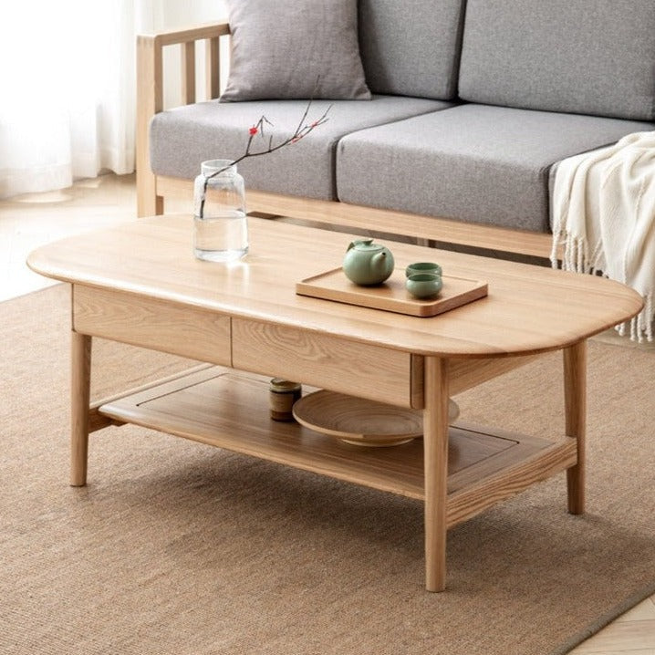 Bàn Coffee Oval Gỗ Sồi