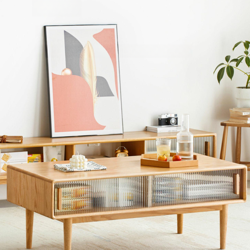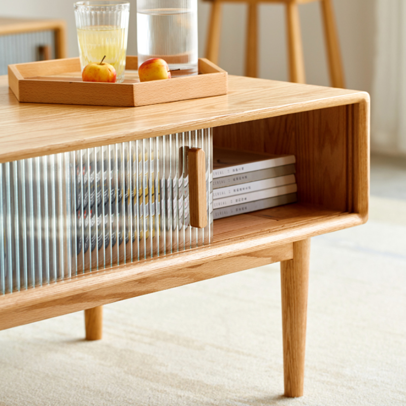Chất liệu: Kính Sọc Mài + Gỗ Sồi (Oak)_95% + Gỗ Cao Su Veneer Sồi_5%