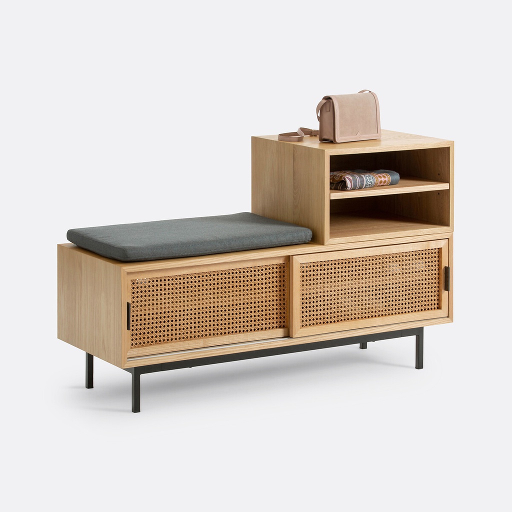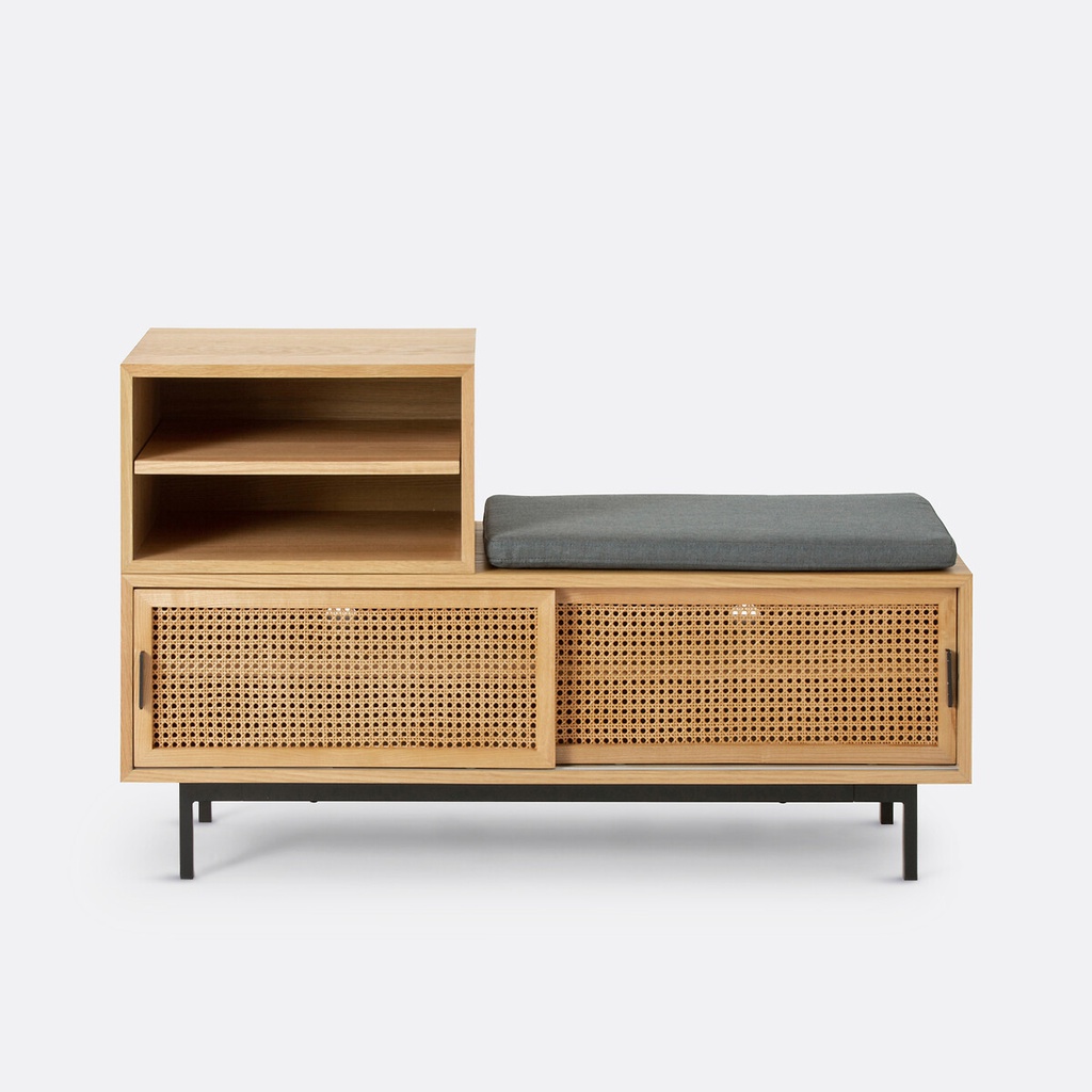 Chất liệu: Nệm + Mây Nhựa + Gỗ Sồi (Oak)_5% + Gỗ Cao Su Veneer Sồi_95% + Sắt