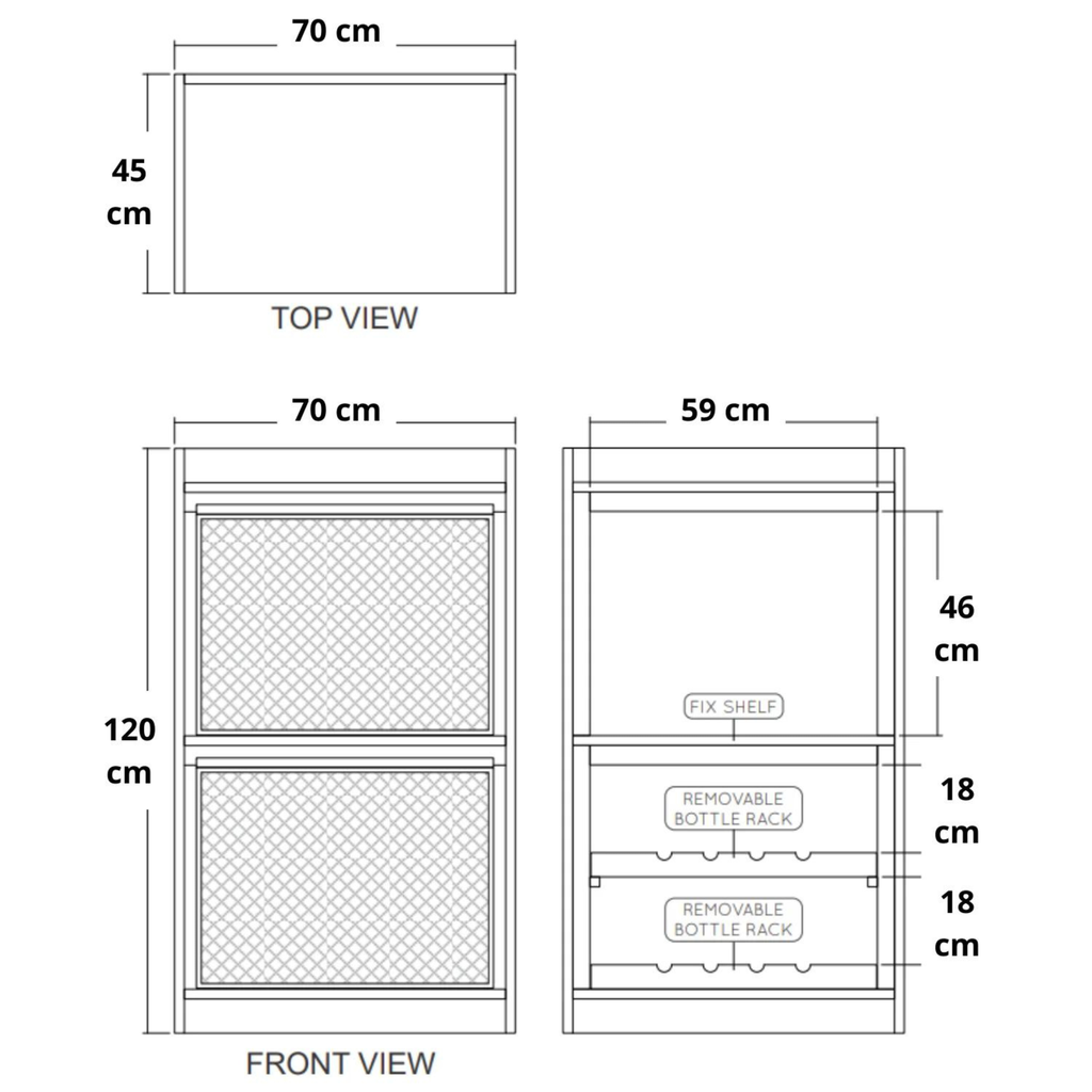 Kích Thước: Cao 120 Ngang 70 Rộng 45 (cm)