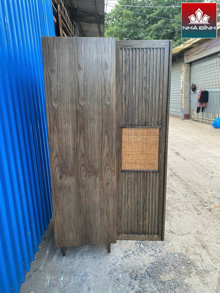 Tủ Quần Áo Gỗ Cao Su Veneer Sồi Cánh Kết Hợp Mây